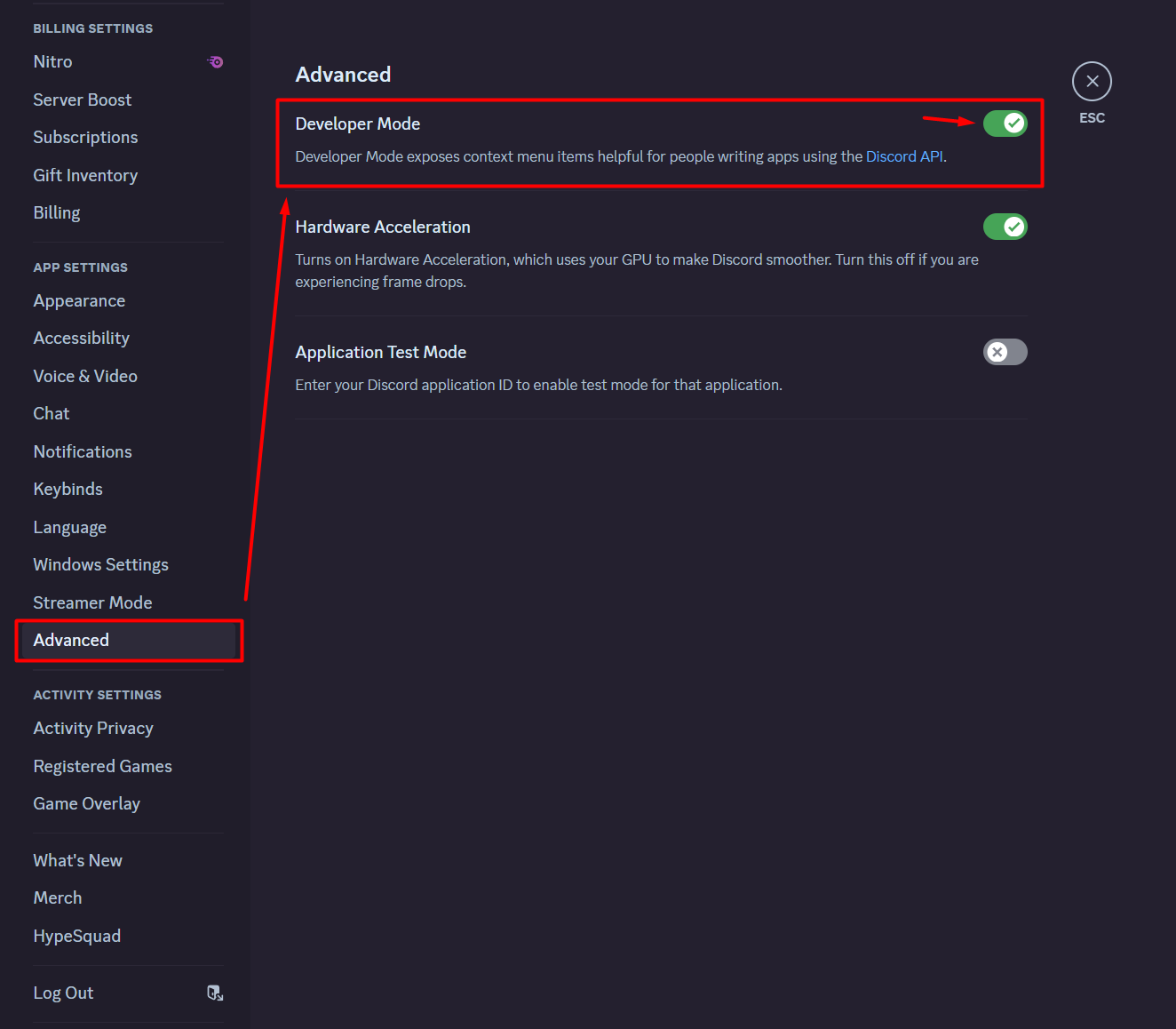 Enabling Developer Mode of Discord